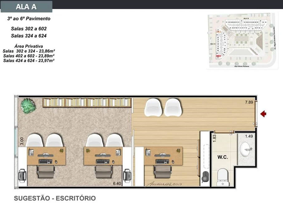 Projeto da Construtora Calçada, Salas e Lojas Comerciais no Recreio.